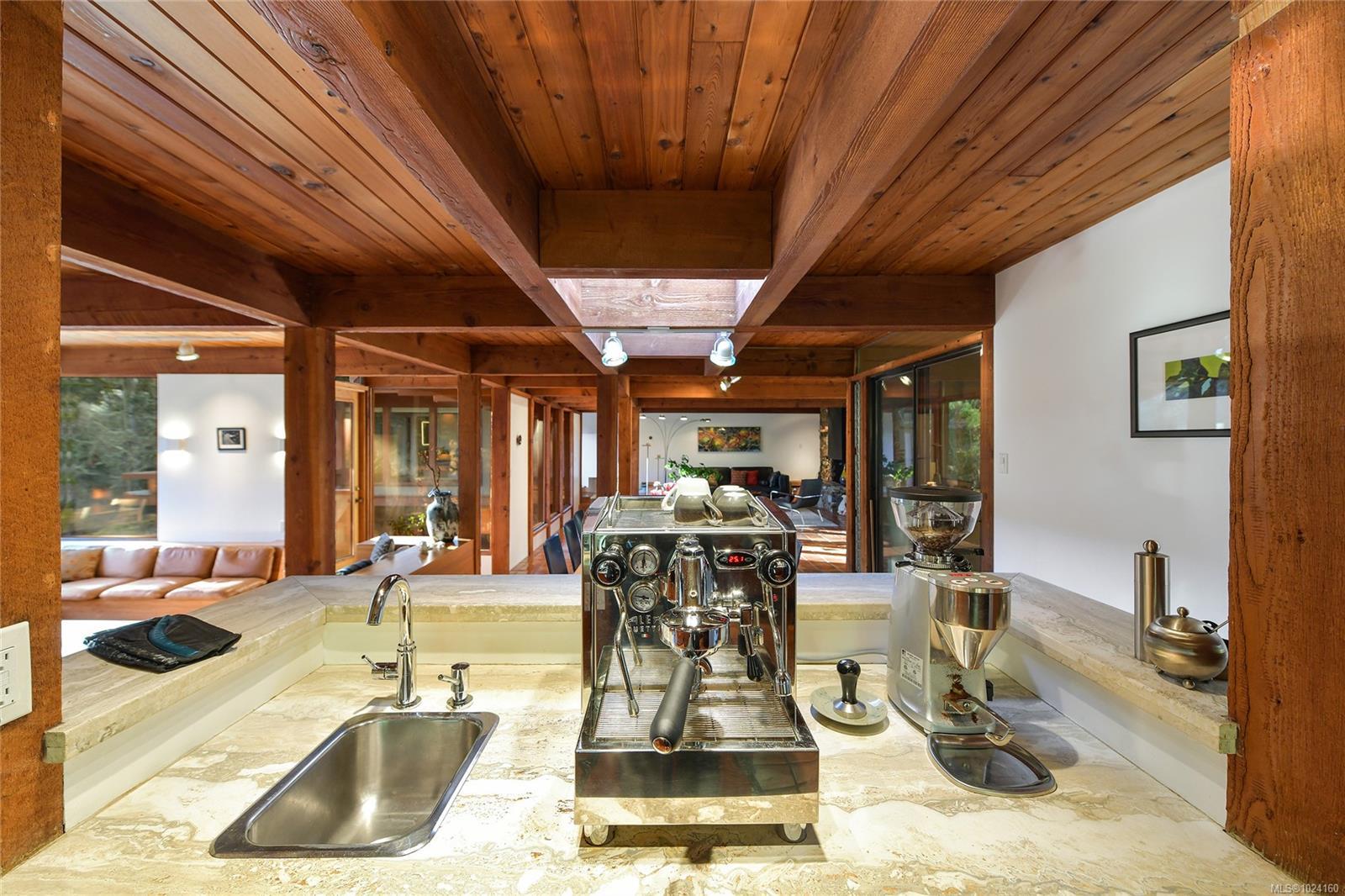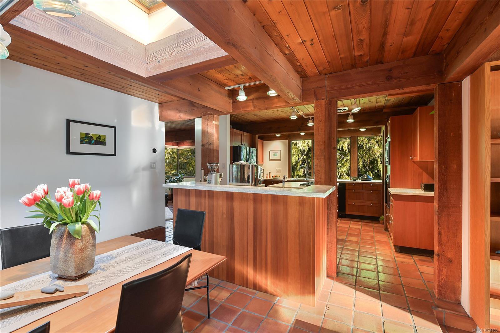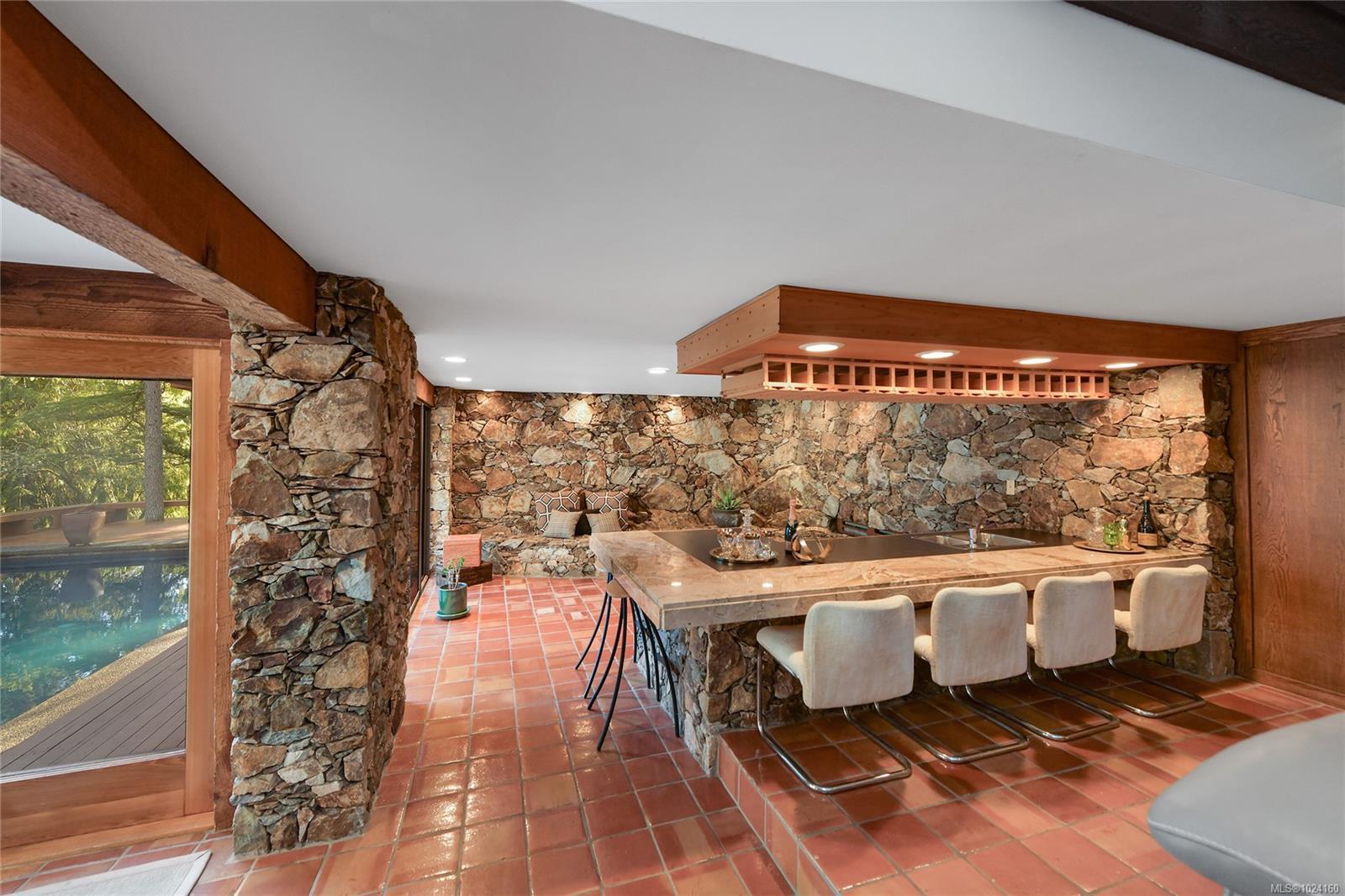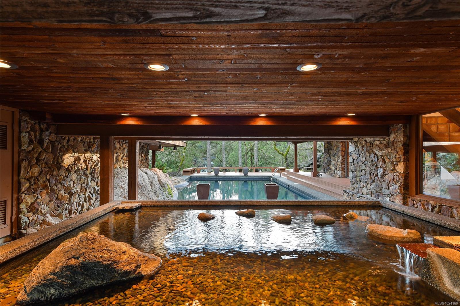 Step into the world of exquisite WEST COAST POST & BEAM architecture with this magnificent residence masterfully crafted by renowned architect Werner Forster with original plans by BROADMEAD's creator, Michael Nixon. A true showcase of 70's inspired design, this executive home is a work of art boasting quality timbers, floor-to-ceiling windows, spacious open plan and a natural pool oasis perfect for entertaining inside & out on the many decks. Perched high to capture breathtaking southern sun exposure, the sprawling layout offers a luxurious primary suite with private hot tub deck, gourmet kitchen, butler's pantry, sunken conversation pit with wood-burning rock fireplace and a media room with a built-in bar showcasing a unique rock feature. Recent upgrades include a commercial-grade gas-fired hot water heater, modern kitchen appliances including WOLF cooktop, upscale thermostats and lighting controls, new low-flow WC's and a cutting-edge home alarm system with remote monitoring. Nestled amidst lush surroundings and close to amenities, this rare gem promises a lifestyle of refinement and elegance not to be missed.