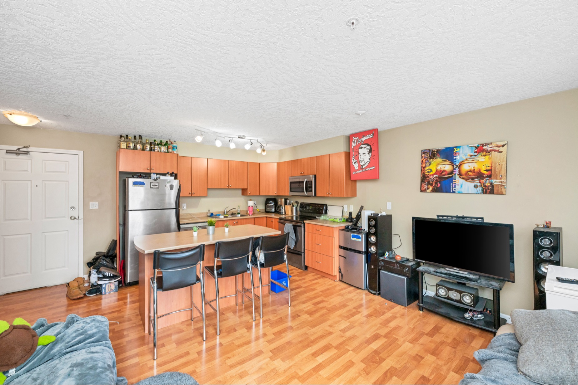 Welcome to this bright and inviting 2 bedroom, 1 bath condo in the heart of Colwood. Ideally located for an active lifestyle, you’re just minutes from shopping, hiking trails, beaches, and easy routes into Victoria or up island. The northwest exposure keeps the home cool in summer while still offering plenty of natural light. The appealing layout features an open-concept modern kitchen with stainless steel appliances and an island with bar seating, flowing into the living room with direct access to the balcony—perfect for summer BBQs. Enjoy in-suite laundry, generous in-unit storage, and a well-run strata with no age restrictions, rentals allowed, and one dog (up to 15 kg) or one cat permitted. This home includes secure covered parking and a separate storage locker.